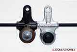 The Circuit Sports Extended Lower Ball Joints for the Mazda Miata NA/NB 1990-2005 are a direct replacement, bolt-on unit that will give you -2 more degrees of camber instantly and allow for a camber adjustment range somewhere roughly between -0.5 and -4 degrees. Over time, the dust boot on your OE ball joints can deteriorate, introducing dirt and other particulates into the joint. This can cause clunking, vibration, and/or excessive tire wear. Our lower ball joints are made with high quality components and are built and assembled by an ISO9001:2000 certified manufacturer: including forged housing/stud, high quality rubber boot, and oxidation/corrosion resistant silver zinc coating. Each unit is also built to tight tolerances, which allows for a 40% stiffer improvement of the ball stud joint over OE and allows for greater durability and longevity. Purchase includes high grade nuts and cotter pins for easy and direct installation. Professional wheel alignment highly recommended after install; we suggest extending the inner tie rods by a few mm on each side to compensate for the toe-in.